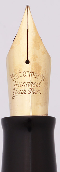 Nib FINE Waterman's Hundred Year Pen gold nib. Semi-flex with no significant line variation.