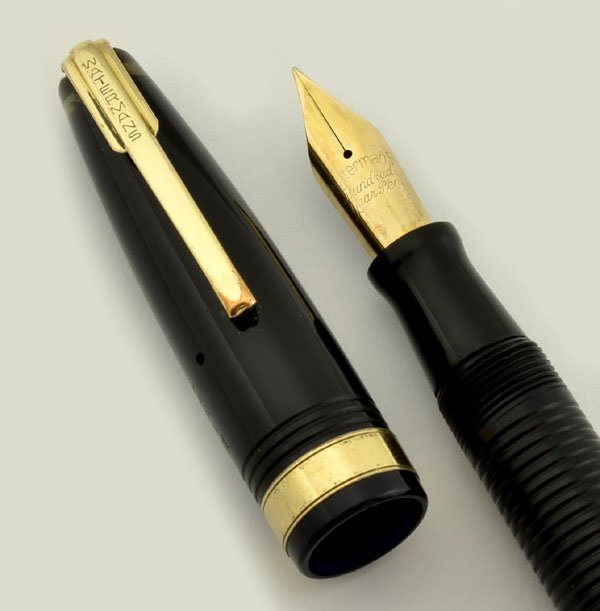Manufacturer and Year | Waterman, USA, circa 1941. This is the third year version where the clear parts matched the solid color ... in this case blue. Third year models had one cap band and a ribbed barrel and partially ribbed cap. |