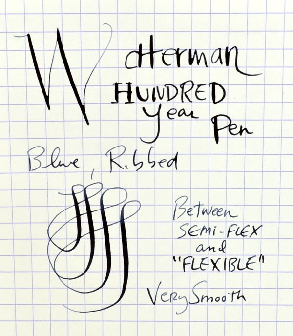 Nib | Huge gold Waterman Hundred Year Pen nib. Fine with a good amount of flex, somewhere between semi-flexible and garden variety flexible. See writing sample. |