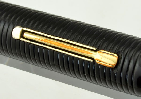 Excellent working condition. Only very light scratches on the body and trim, with some brassing on the bottom tip of the clip and high points of the clip, and the lever. No cracks in the pale blue celluloid on the top of the cap, but we do recommend caution when using the clip as this area can be prone to cracking. The barrel end is a replacement done by Ron Zorn, and we hope you agree it looks great.