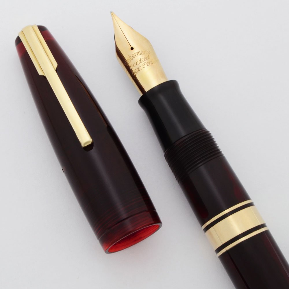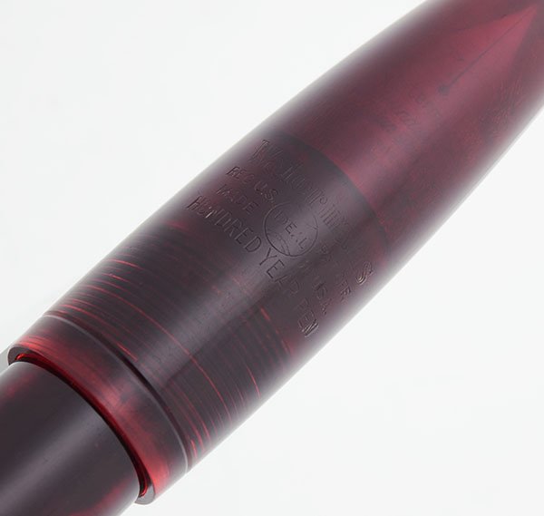 Condition FOUNTAIN PEN: Superior working condition. Light handwear on the body and trim, with no brassing. Lucite can be prone to cracking, but luckily it doesn't crumble like the material used in the later Hundred Year pens. No cracks, chips, or personalization. The nib writes super smoothly and has good tipping material. The cap imprint is worn but readable. It is ready to write.