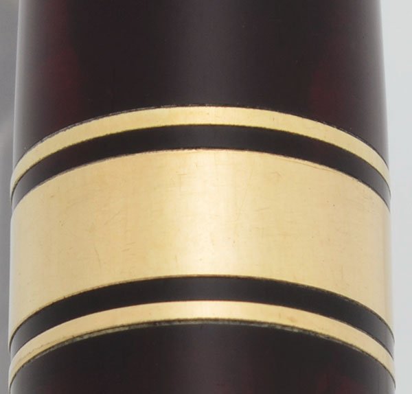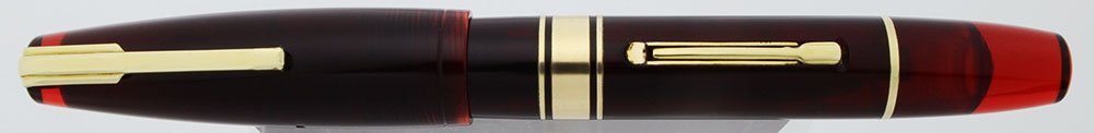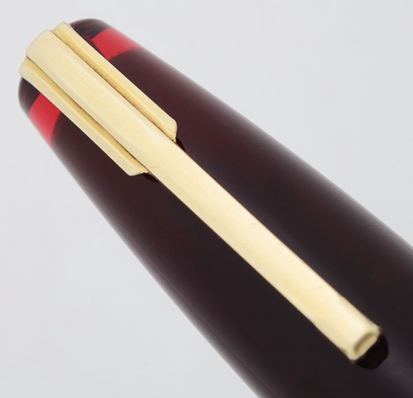 Color Red transparent smooth barrel and cap, made of Lucite. Gold plated trim.