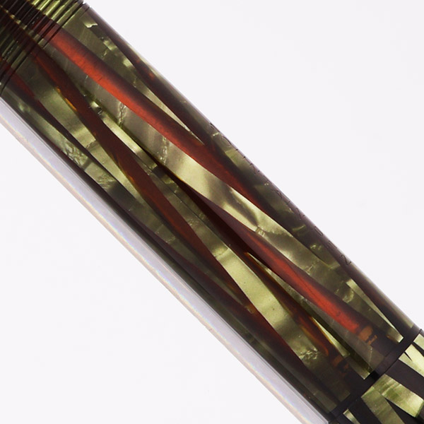 Color "Emerald Ray" finish (green and black celluloid) with great barrel clarity. The trim is gold plated.