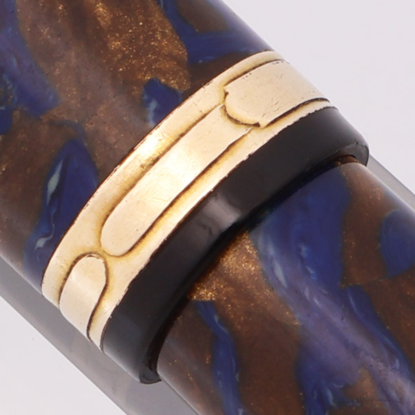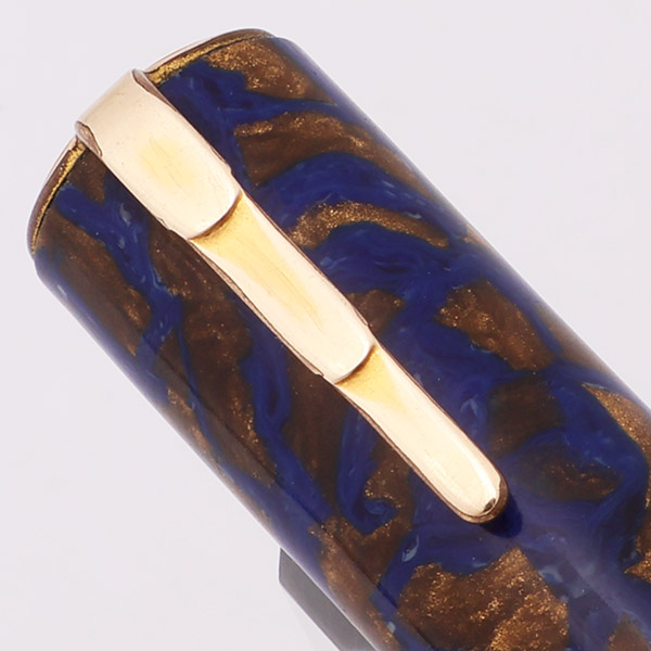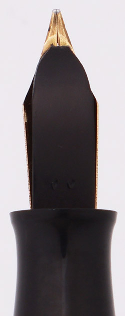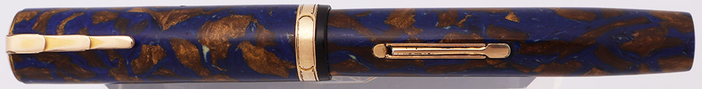 Condition Excellent + condition. There is light scratching on the cap and barrel surface. The cap has some light plating wear around the edge of the finial and along the sides of the clip. The cap band has small touches of plating wear on both upper and lower edges. The section looks fantastic. There are marks from capping the pen. The lever has plating wear around the edge of the tab end and on the bar. The end of the barrel has some scratching. No cracks, chips, dings, dents, or personalization. The imprints are all clear and readable.
