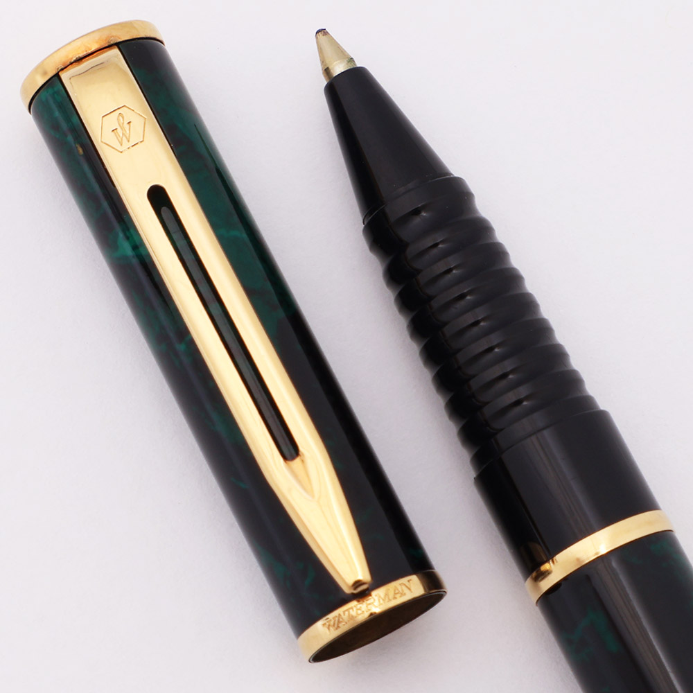 Filling System Takes international or Waterman rollerball refills. A new Waterman refill is installed.