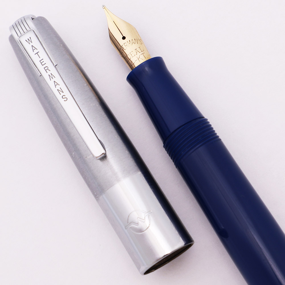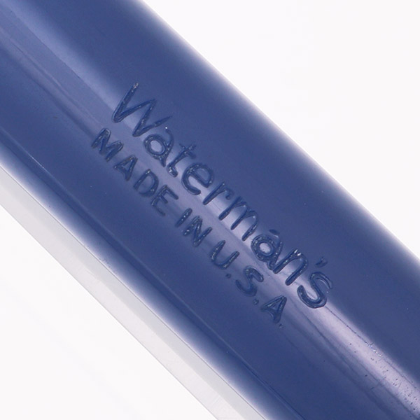 Color Dark blue barrel with steel cap (the top half is brushed finish, and the bottom half is smooth). There is a Waterman's logo on the shiny part of the cap.