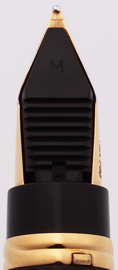 Nib MEDIUM 18k two-tone nib. It wraps around the feed somewhat.