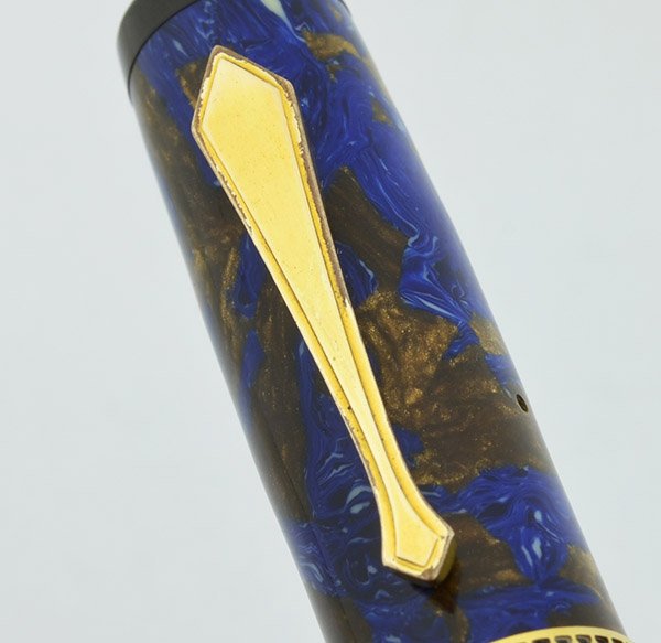 Condition Excellent condition, with minor discoloration of the bronze chunks in the barrel, so that they look a little grey. The body and cap are free of cracks and chips. There are some light signs of use, but overall it is very smooth and shiny. There's a little wear on the top of the clip, and the cap band, but otherwise the trim is excellent. Nice deep imprint. With its new sac, it is ready to write.