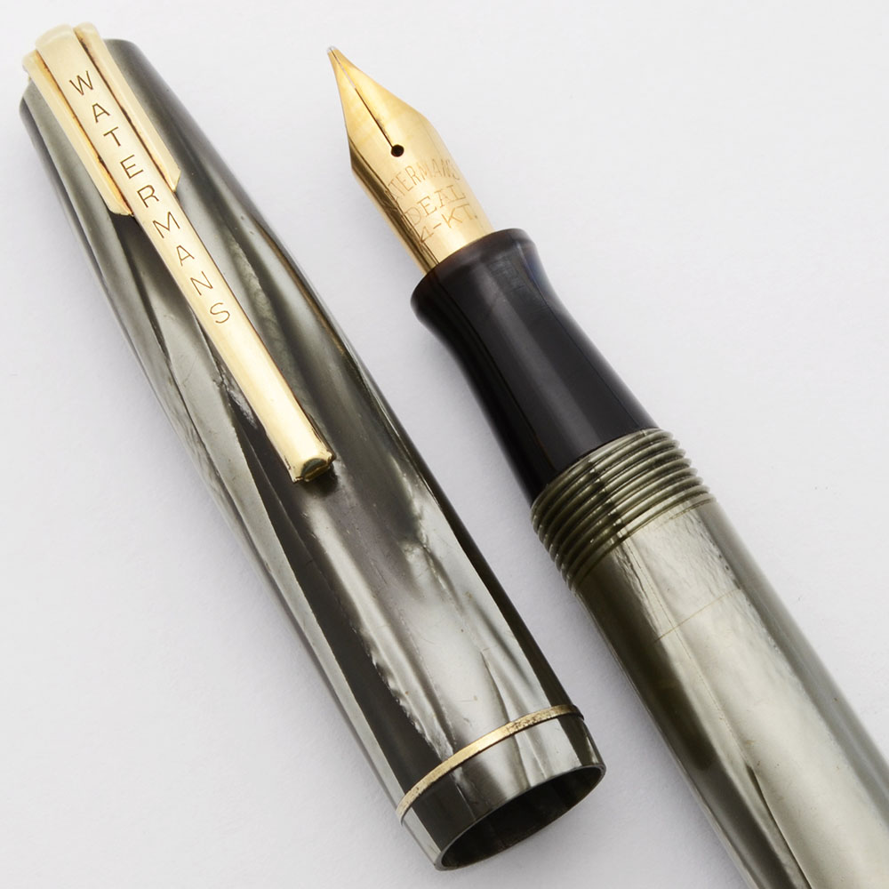 Nib Fine 14k nib is marked "Watermans IDEAL 14K" is semi-flexible. If you are looking for flex that is easy to write with on an every day basis, these 1940s Watermans can't be beat in terms of flex-per-dollar. Line variation from fine to medium. Please see writing sample below.