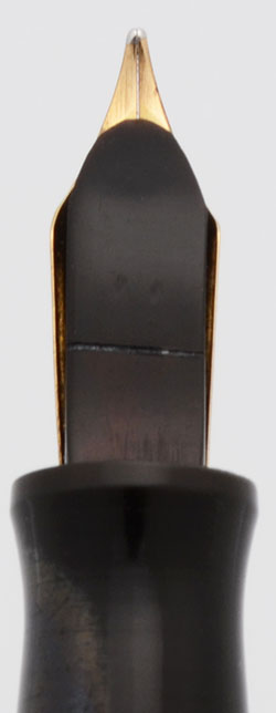 Condition Excellent condition with no cracks, chips, or dents. This is a shiny, silky pen with beautiful coloring and in a classic design. The cap and barrel have moderate wear. The barrel has marks caused by the cap lip and some small bite marks near the end. The thin cap band has scratching and some pitting. The clip has some small amount of brassing toward the tip, but otherwise has excellent plating. The imprints are clear.