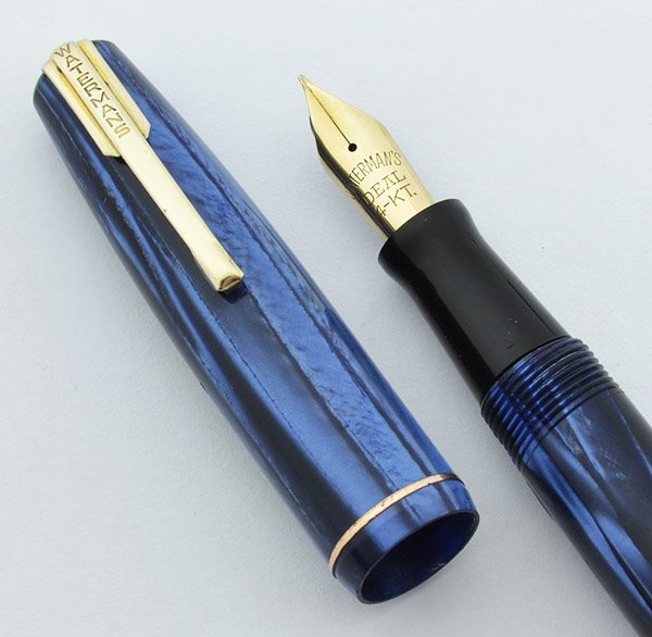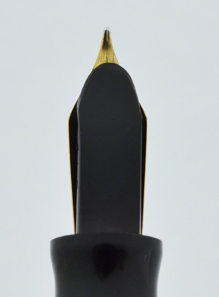 Condition Very nice condition with some scratching and a few bite marks on the cap and barrel. There is a small chunk missing from the lower end of the barrel, though everything is polished smoothly so it's possible to miss it. The plating has a little brassing on the gold plated jewel piece on the top of the cap, and a little on the cap band, but the plating on the clip and lever is in great condition. It looks very good, and writes well.