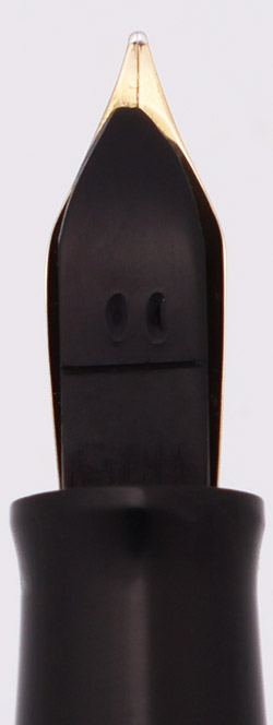 Condition Excellent + condition. No cracks or chips. The cap has light to moderate scratching. The clip has plating wear along the sides. The rivet holding the cap in place has lost nearly all of its plating. The cap bands also have spots of plating wear. The section has smoothed down tool marks. The barrel has very light scratching. The lever has some plating wear along the sides. The nib is in excellent condition with lots of tipping material. The imprint is clear.