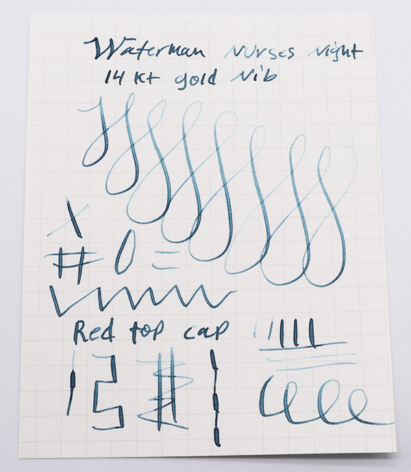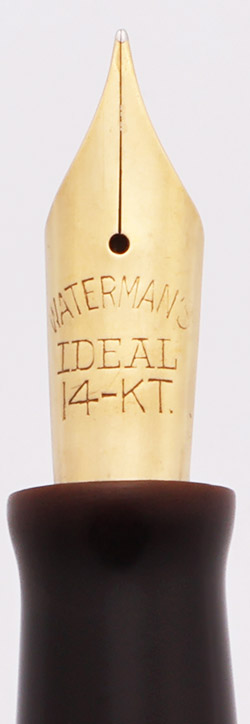 Nib EXTRA FINE FLEXIBLE Waterman's Ideal 14k nib is smooth with great tipping material. It's nicely flexible but not full flex, with easy line variation from extra fine to a medium. See our writing sample below.