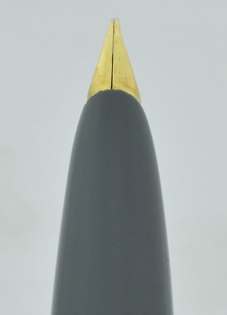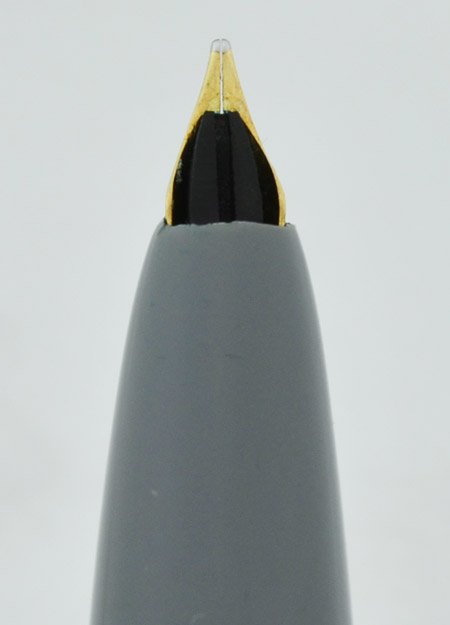 Nib MEDIUM semi-hooded Taperite nib is smooth with nice tipping material. The tip is shaped like a very slight italic. There's a tiny mark on the nib toward the tip of the tines, but it writes very well.