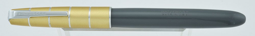 Color Grey body with a matte textured gold-colored cap with widely spaced chrome groove rings, and chrome plated trim.