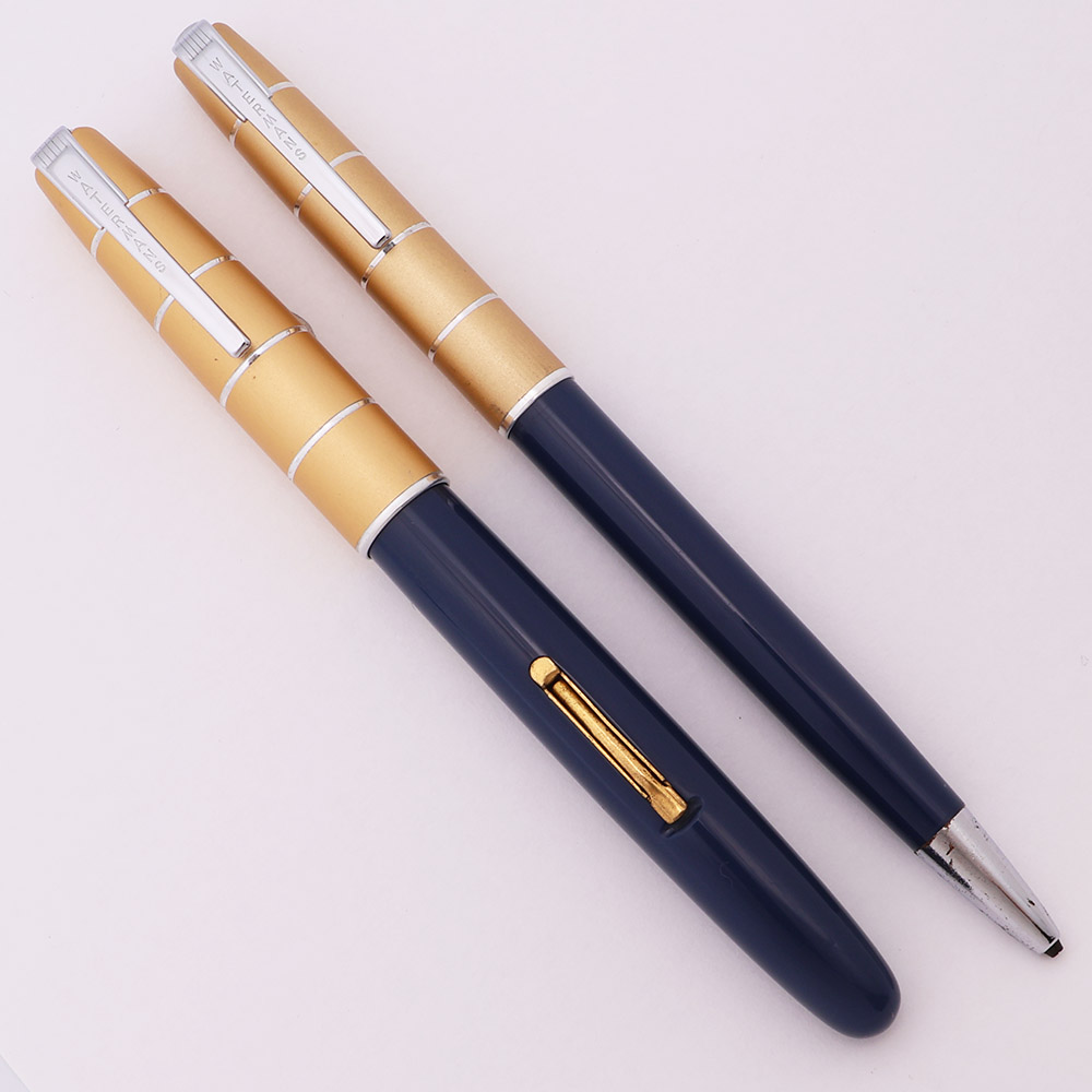 Condition Excellent + condition. The fountain pen has overall light handwear and scratching. There are some scratches on the section from capping. The cap has some tiny marks. The clip looks fantastic. The mechanical pencil has light scratching on the barrel portion. The cap looks great. The cone has a lot of bubbling and flaking in the plating. No cracks or chips or personalization.