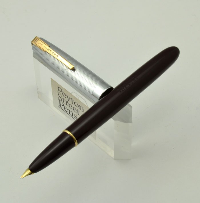 | Color | Burgundy barrel with a steel (?) cap in a lined design. |