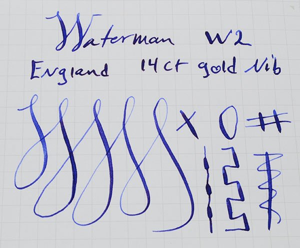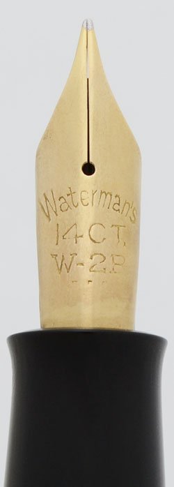 Nib The 14k nib is marked Waterman's 14CT W-2B. It is nicely flexible with a lot of tipping material, just short of full flex by our estimation. Fine point. See writing sample below.
