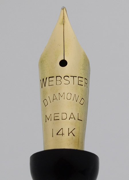Nib Medium 14k nib is smooth and firm. The nib reads, "Webster Diamond Medal 14k."