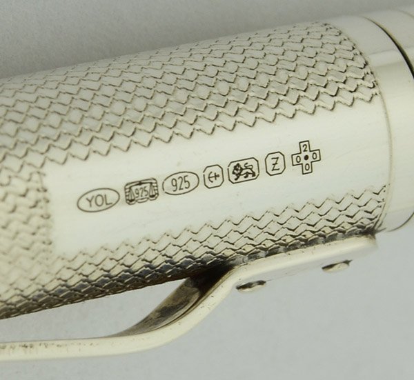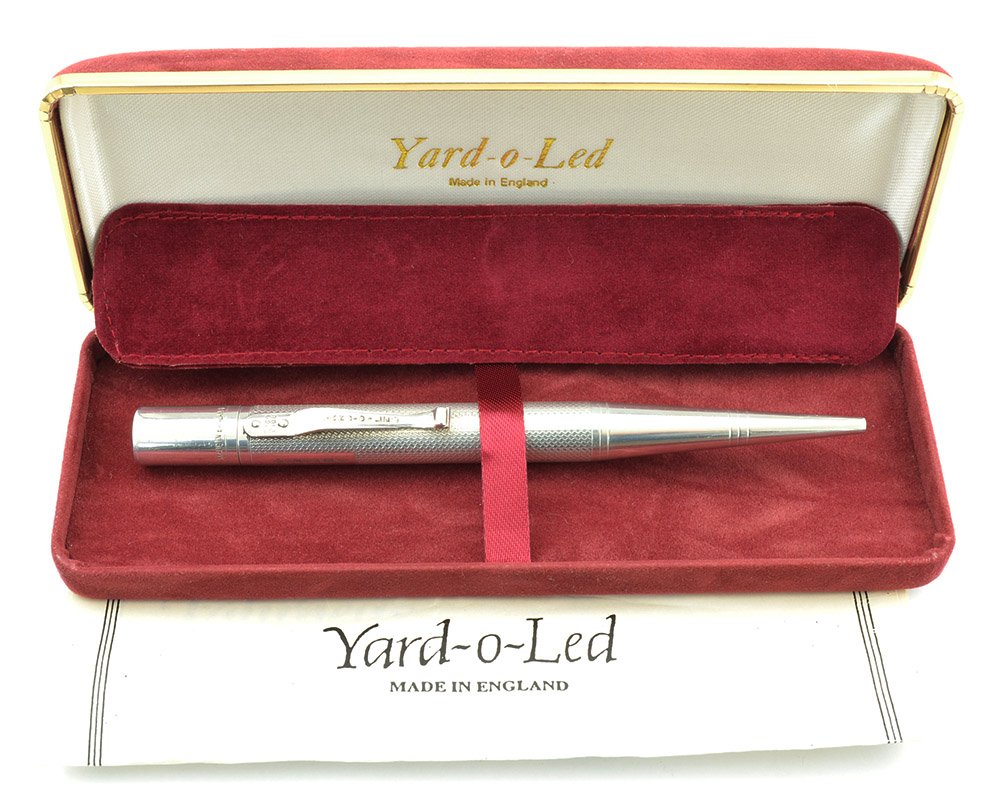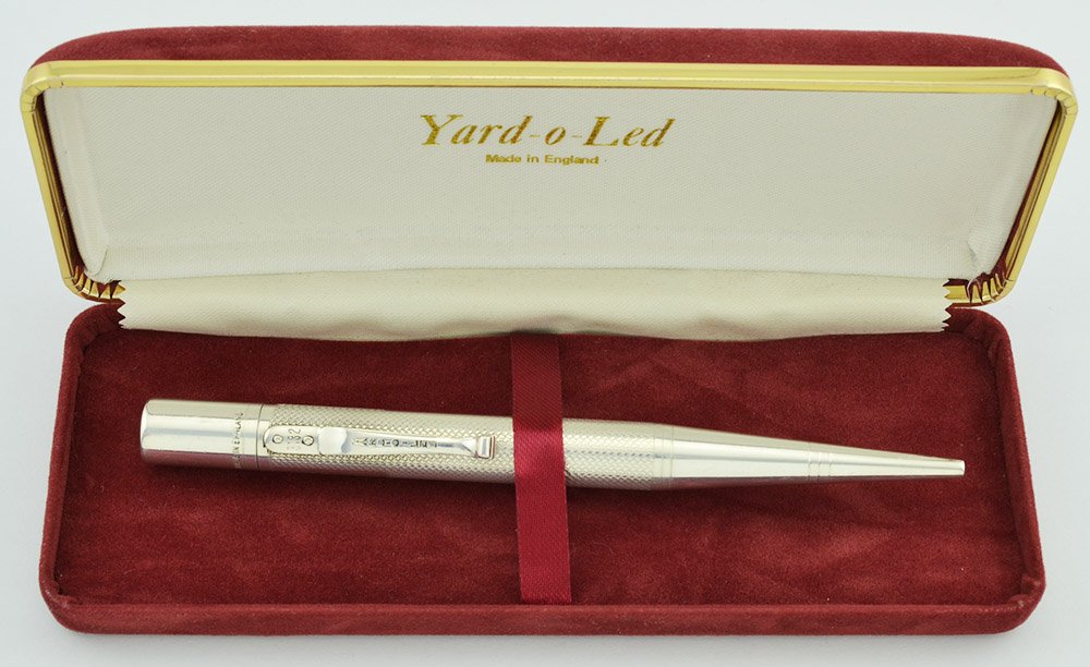 Condition Excellent used condition. The pencil has handwear and some tiny indentations (bite marks?) on the top of the pen. The hallmarks are clear. No chips or dents and it has a tiny spot of wear on the cone. No personalization. The pencil is working very well. It ships with a Yard-o-Led box with velvet pencil sleeve, though we are not sure if this is the original box.